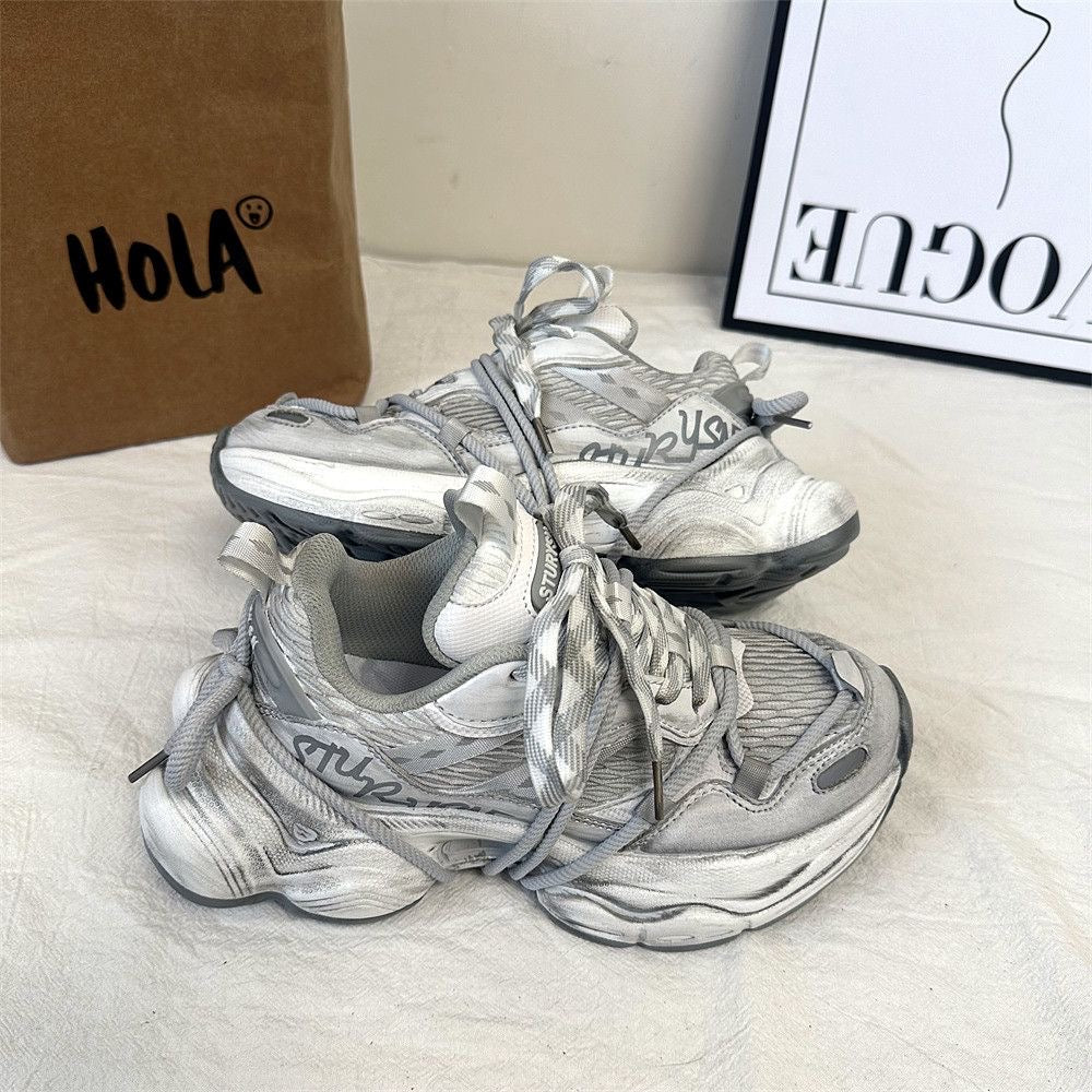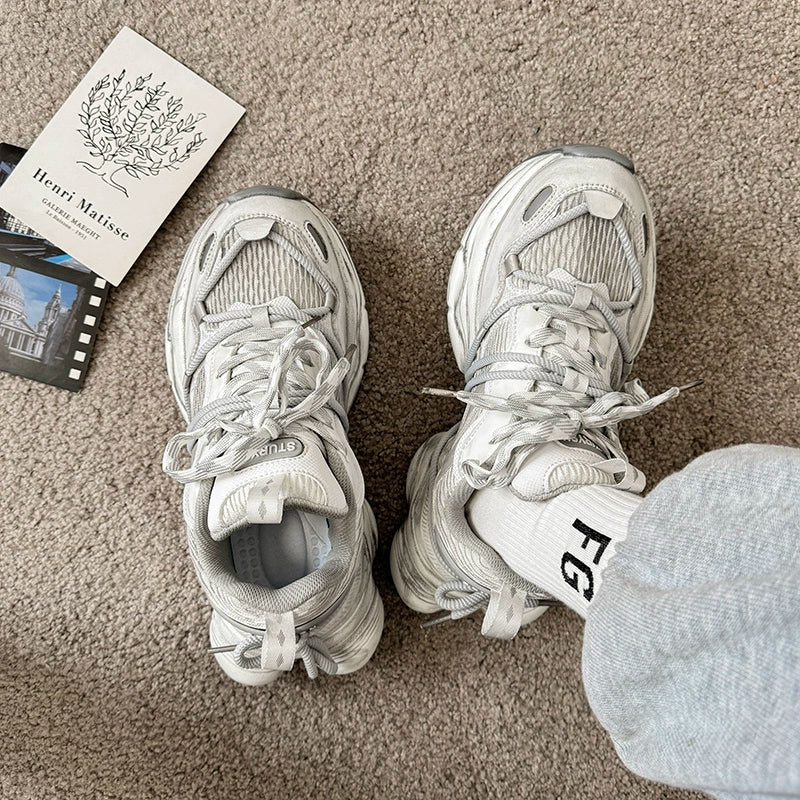 Distressed Retro Thick-Sole Sneakers